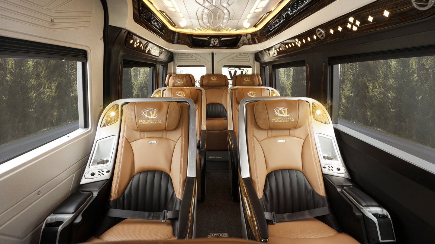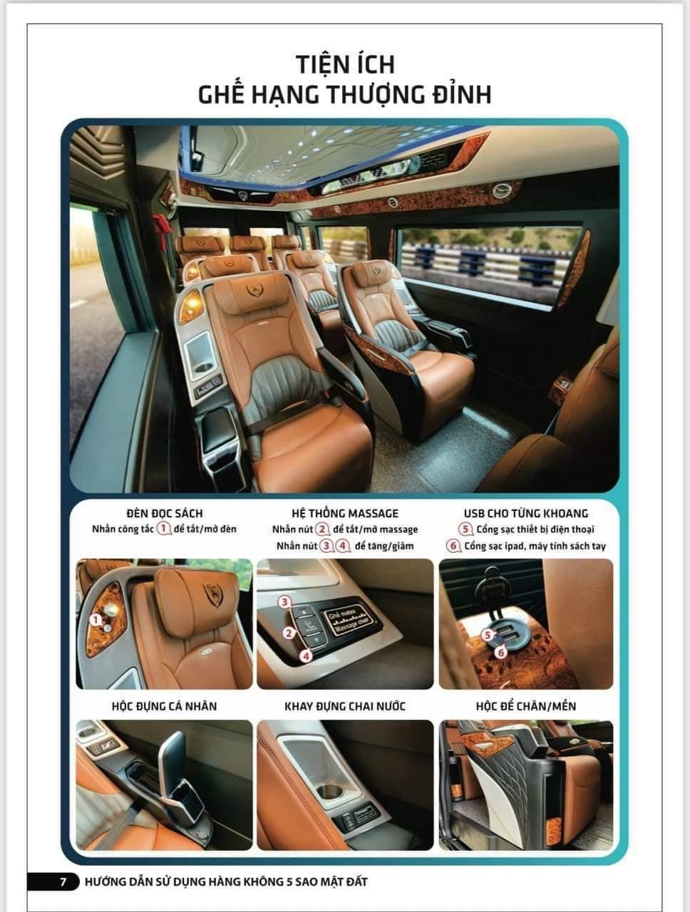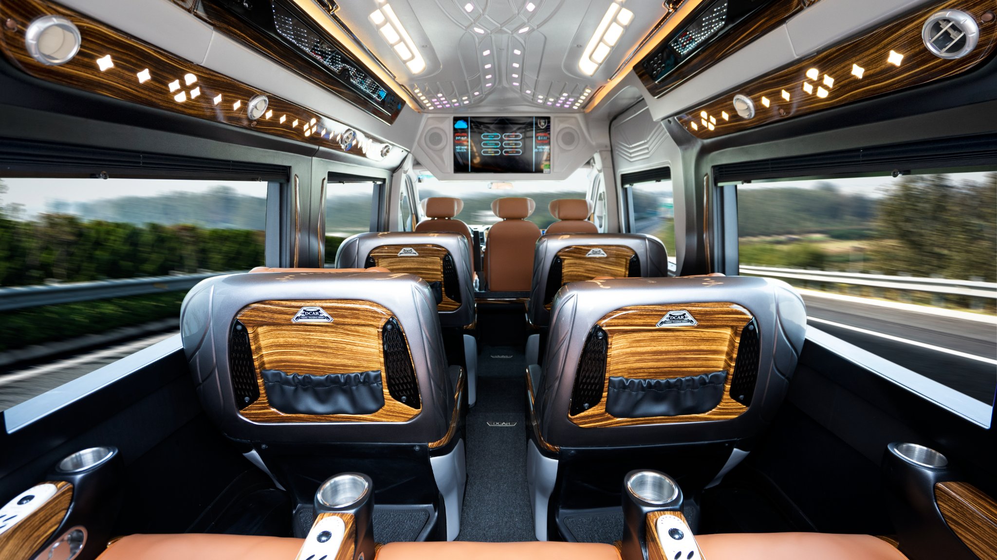 Trang bị ghế da cao cấp, có thể ngả linh hoạt. Hệ thống điều hòa, cổng sạc USB, Wi-Fi tốc độ cao, màn hình giải trí hiện đại.